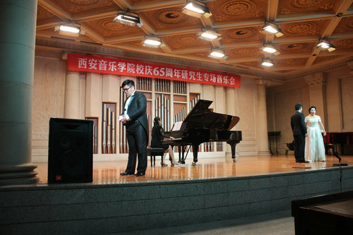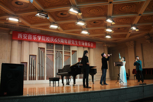 2014年10月23日晚,西安音乐学院校庆65周年研究生专场音乐会在我院举行。陕西省学位委员会办公室主任杨俊利、副主任郝霄京与我院副院长安金玉、韩兰魁等一同观看了音乐会。
