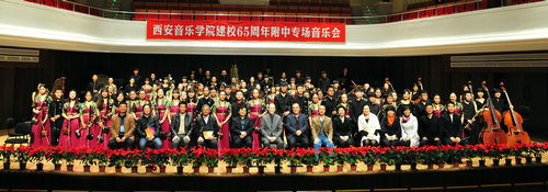 为庆祝我院建校65周年,2014年10月27日—28日,我院附中在艺术中心音乐厅举办了两场专场音乐会。省委教工委常务副书记董小龙,省文化厅厅长刘宽忍,省音协主席尚飞林,我院党委书记李映方,党委副书记、常务副院长孙卫国,副院长安金玉、韩兰魁,党委委员、音乐教育学院院长冯力斌以及原副院长鲁日融、罗艺峰等领导专家,与各界嘉宾、附中全校师生及部分家长两千余人一同到场欣赏。