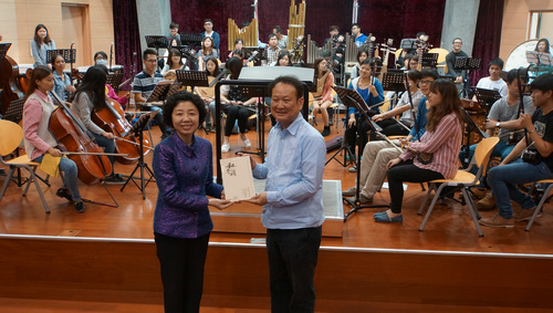 除联合演出外,双方还进行了深入的学术交流,张津波详细介绍了西安音乐学院历史沿革及民乐系的办学理念、方式、成果等,作为交流礼品,赠送了由西安音乐学院民族管弦乐团演奏的“《和平颂》——赵季平民族管弦乐作品音乐会”专辑;作为回馈,对方也赠送了各自具有本单位代表性的精美礼品,院校领导带领西音师生们参观了校园、琴房、教室、乐器制作坊等,深入介绍了该校硬件设施、软件配置及办学情况,还对未来双方能有更多的交流提出了期待。