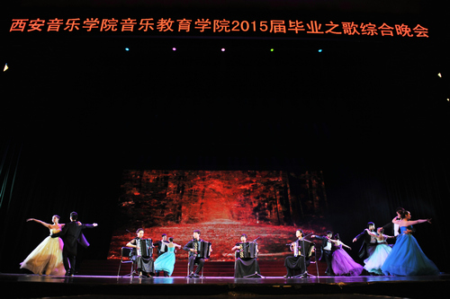 2014年12月3日晚,我院音乐教育学院2015届“毕业之歌”综合晚会在西安易俗大剧院举行。中共陕西省省委教育工会常务副书记董小龙、我院党委书记李映方、副院长安金玉及院党委委员、音乐教育学院院长冯力斌等出席。