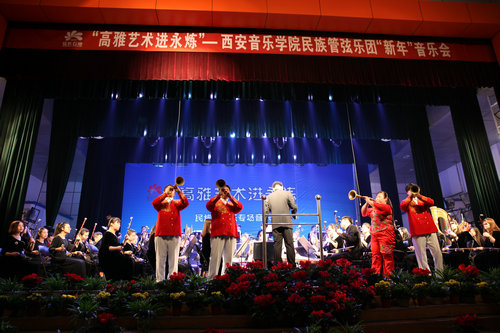 2014年12月23日晚,我院民族管弦乐团赴延长石油集团永坪炼油厂举行了“高雅艺术进永炼——西安音乐学院民族管弦乐新年音乐会”。音乐会以“弘扬民族音乐,服务人民群众”为主旨,向辛勤工作在祖国能源建设一线的工人们送去了新年祝福。