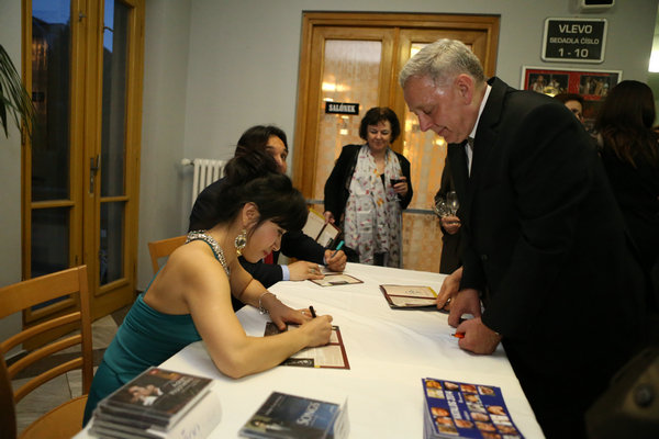 音乐会之后,Albina Houskova女士主持了当晚的乐迷签字活动和酒会。热情的乐迷排成长队手捧节目单请两位歌唱家签名,并合影留念。音乐节期间,鲜于越歌还参加了多场交流活动并与德沃夏克的家人进行了亲切交谈。
