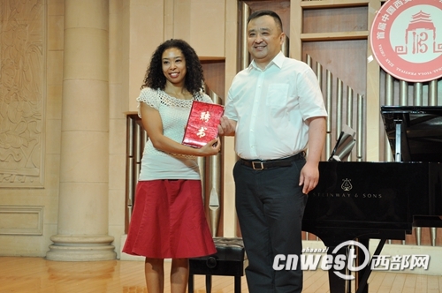 王真向纳库图拉•恩格温雅玛颁发西安音乐学院客座教授聘书。