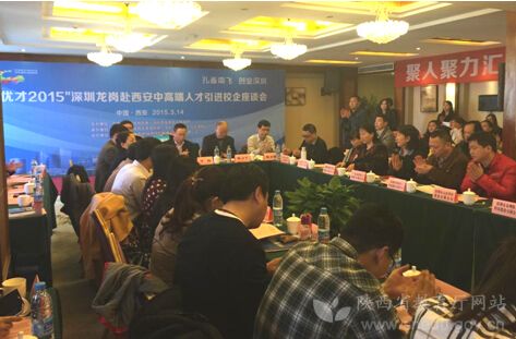 近日,“优才2015”深圳市龙岗区赴西安中高端人才引进校企座谈会举行。深圳市龙岗区人力资源局副局长李俊,陕西省人才交流服务中心党委委员、省人才交流服务中心副主任陈力平,深圳市龙岗区所辖50余家企业人力资源代表到会,该院大学生就业指导中心教师单松良子、王权代表该院参加了座谈会。座谈会上,参会相关领导、企业代表分别致辞和发言,校企双方进行了充分的交流。单松良子详细介绍了该院专业分布、毕业生人数情况,并向所有参会企业发出了诚挚邀请,欢迎企业代表前来招聘应届毕业生。