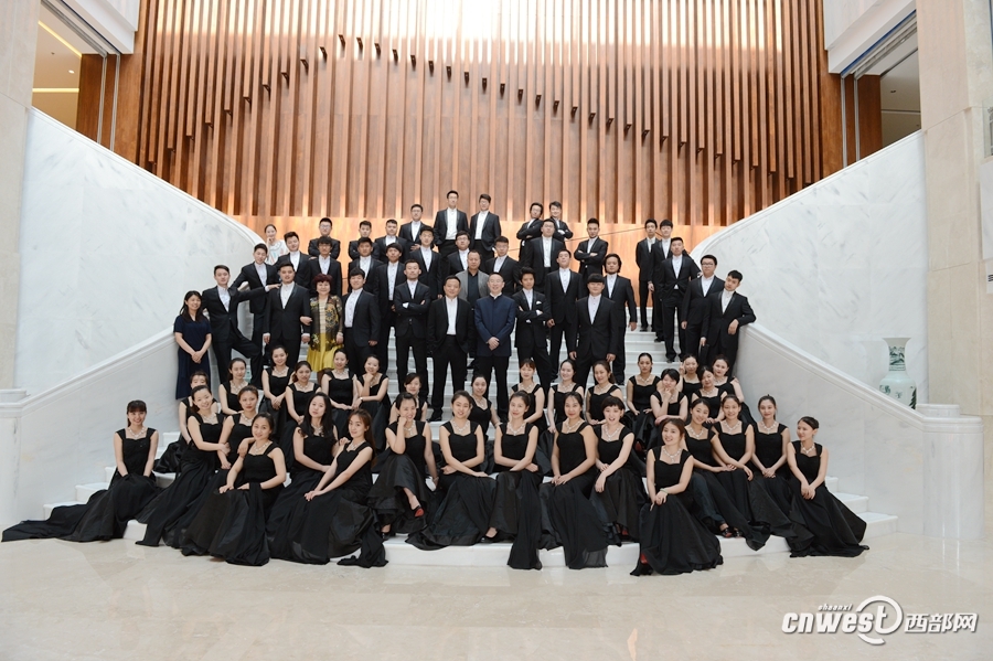 西安音乐学院合唱团演出结束后合影。