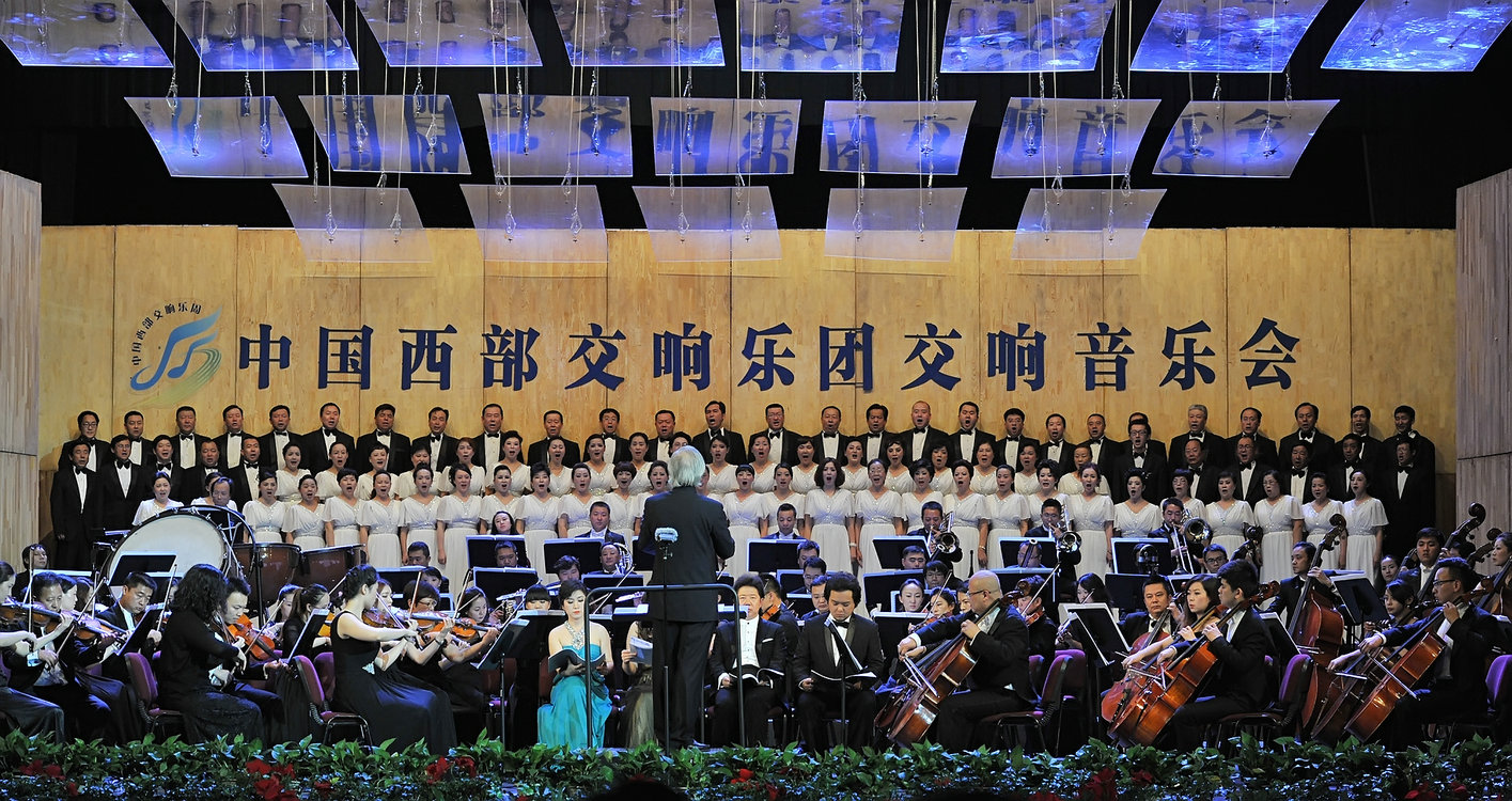 贝多芬《d小调第九交响曲》作为此次音乐周闭幕式音乐会压轴节目,中国西部交响乐团由79名各省优秀演奏家联袂组成的,在我国著名音乐家、指挥家卞祖善先生指挥下,完整演绎了四个篇章。陈勇、鲜于越歌、宋委、侯高翔担任第四乐章“欢乐颂”的领唱,他们精彩的演唱打动了全体观众,现场爆出热烈的掌声,将音乐会推向高潮。