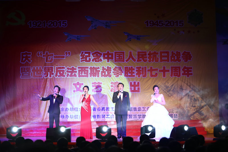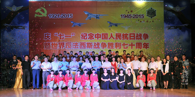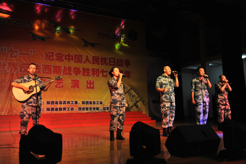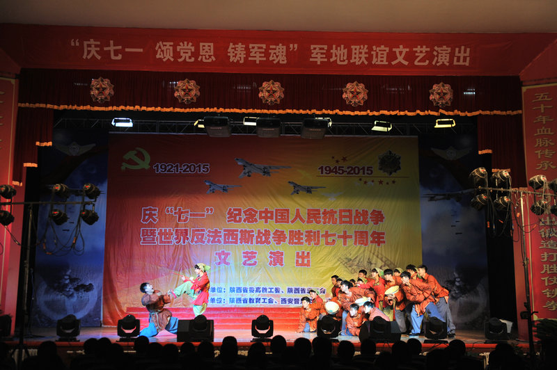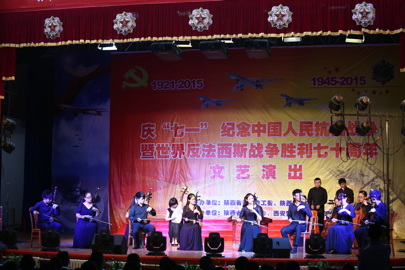 2015年6月30日,“庆七一·颂党恩·铸军魂”纪念中国人民抗日战争暨世界反法西斯战争胜利70周年文艺演出在空军某部隆重举行;演出由陕西省高教工委和陕西省总工会主办,陕西省高教工委统战部、教育工会、西安音乐学院和空军某部承办。陕西省高教工委常务副书记董小龙,我院院党委书记李映方,陕西省总工会副主席丁立虎、王宏兵,我院党委副书记、常务副院长孙卫国,陕西省教育工会主席张敏,我院党委委员冯力斌,陕西省高教工委统战部副部长孙全学等与部队官兵和家属近千人一同观看了演出。