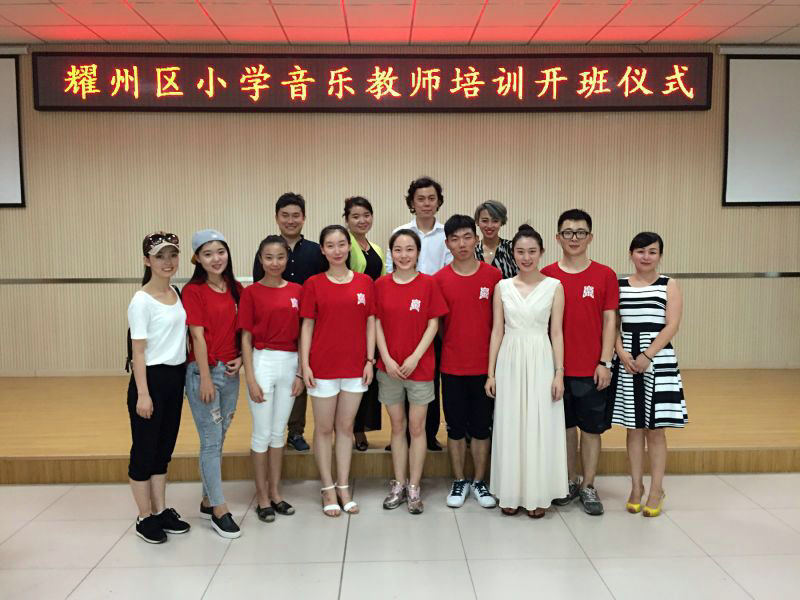 7月15日下午,我院2015年大学生志愿者暑期“三下乡”社会实践活动——耀州区小学音乐教师培训班开班仪式,在铜川市耀州区北街小学逸夫实验综合楼四楼多功能厅举行。耀州区常委兼统战部部长杨琨、耀州区教体局副局长安建利、耀州区团委副书记张永佳、我院音乐教育学院院长冯力斌、院学工部副部长骆玉柏与近百位师生参加了开班仪式。开班仪式由西音挂职耀州区团委副书记张颖主持。