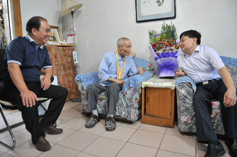 李映方、孙卫国仔细询问了老人的生活起居、精神状态及身体健康情况,并为他想完成的心愿作了解答,祝福他安心晚年生活、健康长寿!