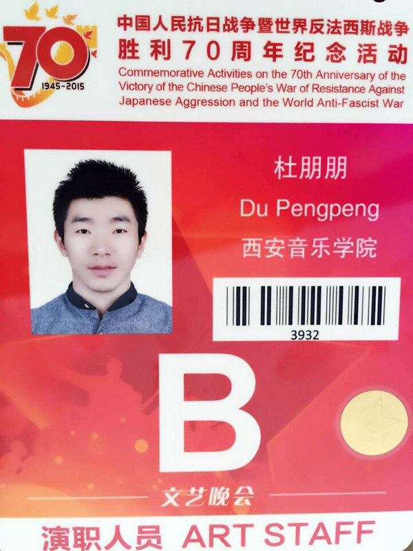 2015年9月3日晚,西安音乐学院陕北民歌班大三学生杜朋朋受邀参加“中国人民抗日战争暨世界反法西斯战争胜利七十周年”专场文艺晚会。杜朋朋和陕北民歌歌手王二妮合唱的《山丹丹花开红艳艳》,再现了红军长征胜利抵达陕北时,山丹丹花盛开的美丽场景。
