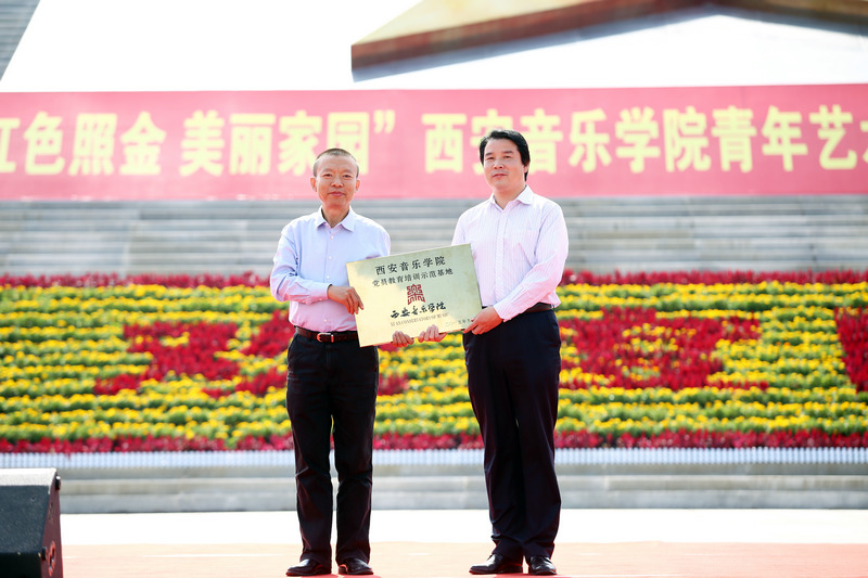 下午2:00时,在照金镇1933广场举行了授牌仪式。党委委员冯力斌、组织部长文戈、团委书记李强代表学院分别向当地政府授颁了“西安音乐学院党员教育培训示范基地”“西安音乐学院大学生爱国主义教育基地”“西安音乐学院音乐教育学院大学生校外实践教育基地”牌匾。