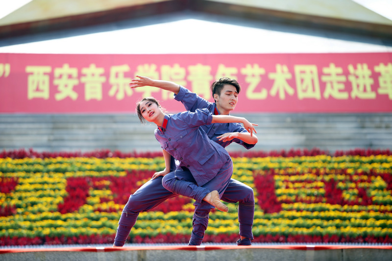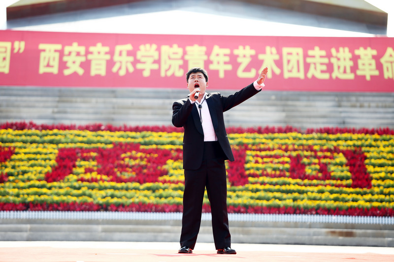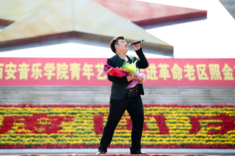 授牌仪式后,由西安音乐学院、中共铜川市耀州区委、耀州区人民政府主办的“红色照金·美丽家园”西安音乐学院青年艺术团走进革命老区照金文艺演出隆重上演。李强、张小东、温静、杜朋朋、刘哲等50余名师生先后倾情演绎《东方红》《在那桃花盛开的地方》《黄河般夫曲》等20多个精彩的节目,在中秋、国庆双节来临之际,为老区群众送上丰盛的文化大餐。师生的表演与观众的热情点燃了照金1933广场,形成了九月照金一道美丽的风景线。