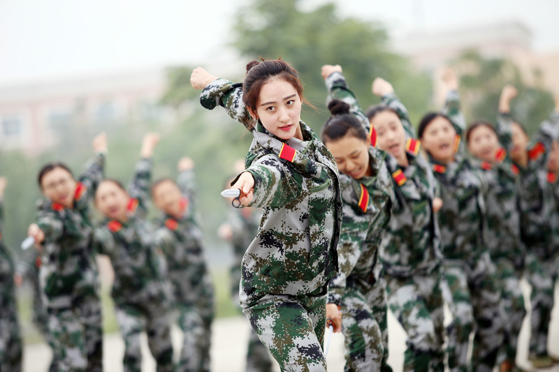 汇报总结表彰大会在雄壮的国歌声中拉开序幕。随着指挥员的口令,12个方队迈着矫健的步伐通过主席台接受检阅。接着以连为单位汇报了队列、擒拿格斗、军体拳、手语操、快乐律动操、匕首操等训练课目。表彰了歌咏比赛获奖连队、军训先进连队和优秀个人、勤务保障和投稿先进个人,院领导向获得先进的连队颁发了奖状。