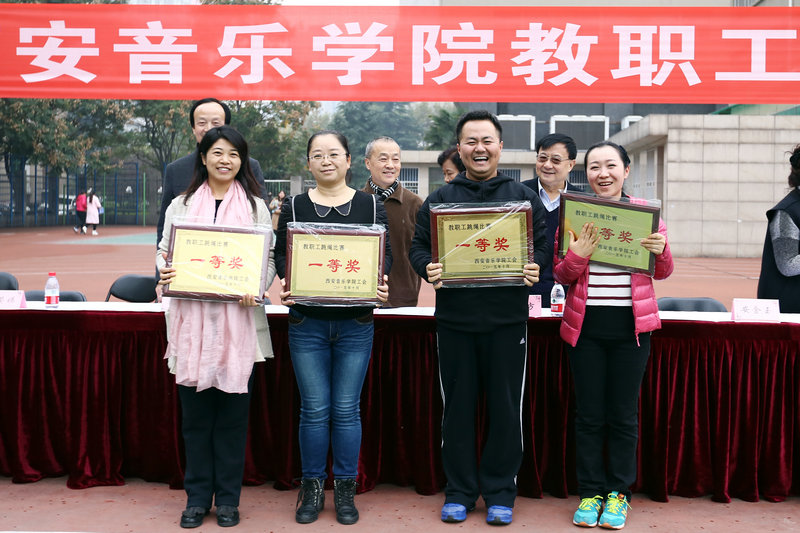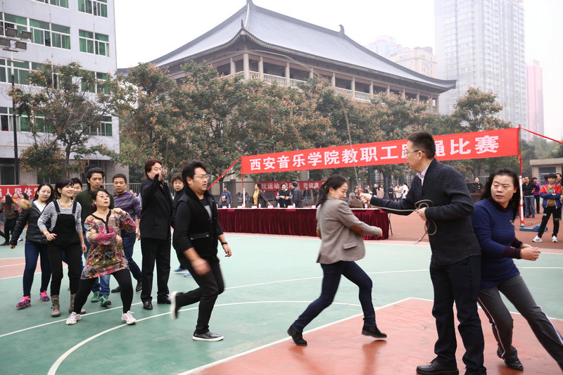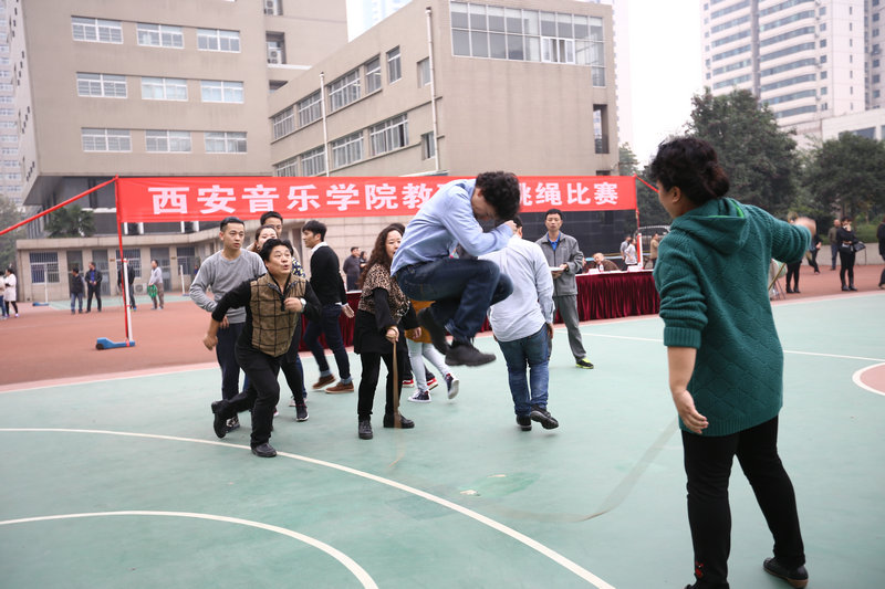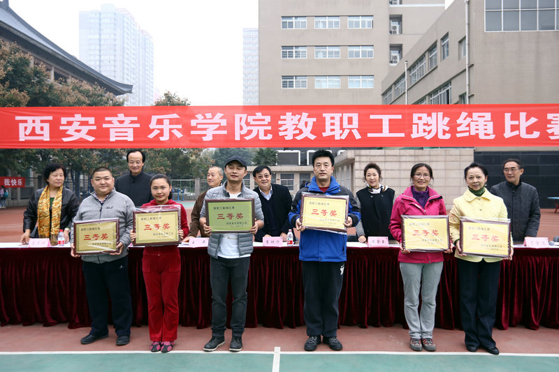 2015年11月4、5日,院工会在操场举办了第三届“西安音乐学院教职工跳绳比赛”活动。院党委书记李映方宣布比赛开始,党委副书记、副院长张立杰代表学院领导致辞,副院长、工会主席安金玉主持开幕式,工会副主席于金波宣布比赛成绩。