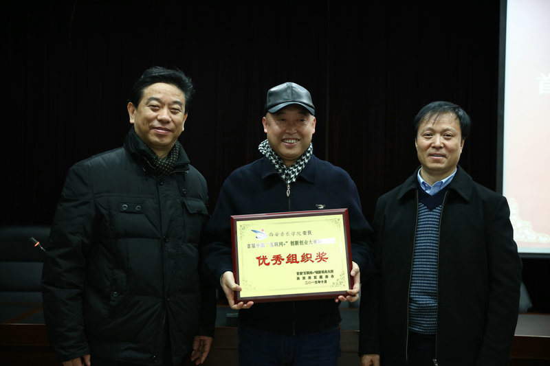 院党委副书记、副院长张立杰,党委委员、音乐教育学院院长冯力斌为获奖项目组颁奖。张立杰做了总结讲话,他希望各部门重视大学生创新创业工作,为大学生创新创业提供服务,积极培养大学生创新创业理念与模式,多组织相关活动,为大学生创业搭建平台。