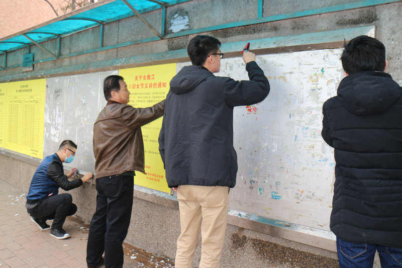 连日来,机关第三党总支组织全体党员,以“弘扬雷锋精神,做良好环境维护者”为主题,开展“学雷锋”系列活动。活动以清除院内各类非法小广告,卫生死角垃圾,为师生营造卫生整洁、健康向上的生活环境为内容。
