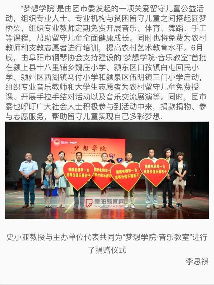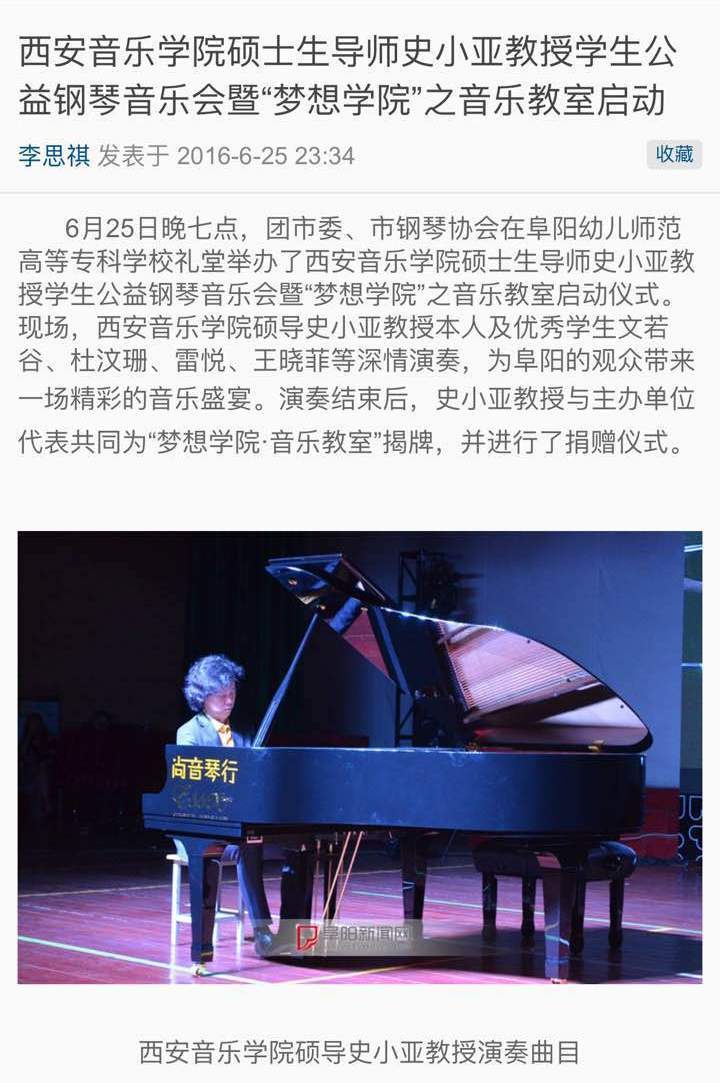 《西安音乐学院硕士生导师史小亚教授学生公益钢琴音乐会暨“梦想学院”之音乐教室启动》