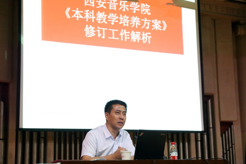 第二场由教务处处长李宝杰做题为“西安音乐学院《本科教学培养方案》修订工作解析”的讲座。