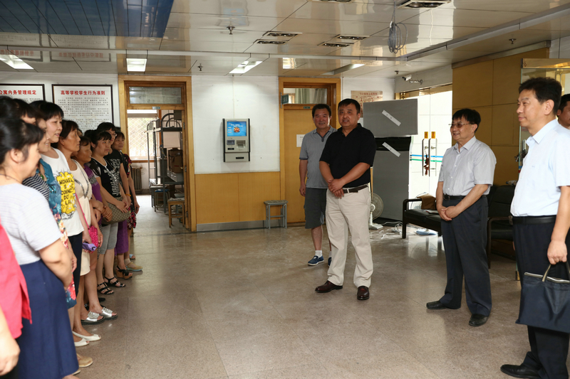 2016年8月9日,党委书记李映方,代理院长王真,党委委员、院长助理冯力斌带领各职能处室负责人,慰问了暑期坚守在一线岗位的教职员工们,在炎炎夏日中为大家送去了丝丝清凉和满满关爱。