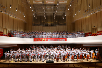 伟大长征精神是中国共产党和全国人民精神文化的重要根脉和不断走向未来的强大精神动力。音乐会上演的《红旗颂》《告别》《突破封锁线》《遵义会议放光芒》《四渡赤水出奇兵》《飞越大渡河》《过雪山草地》《到吴起镇》《祝捷》《报喜》《大会师》《我爱你中国》《歌唱祖国》等诸多二十世纪华人经典音乐,以其刻骨铭心的词句、优美动人的旋律,喜闻乐见的艺术形式和全体演职人员情真意切的演绎,讴歌了中国工农红军在党中央毛主席的领导下,不屈不挠、无私无畏的革命精神,赞颂了红军指导员艰苦卓绝、英勇奋战的英雄气概。在全场演员和观众齐唱《歌唱祖国》时,演出气氛更让大家心潮澎湃、热血沸腾,气势恢宏的动人旋律、高亢嘹亮的美妙歌声,颂扬了中国共产党带领全国人民在新长征路上缔造的丰功伟绩与幸福和平。带着父母和孩子前来观看演出的林女士激动地说:“今天是专程带着父母和孩子来欣赏《长征组歌》的,父母是为了回顾他们当年的艰苦生活,表达对于红军、共产党和毛主席的敬仰和热爱;同时,也让孩子对红军长征的故事有个直观的了解和认识,教育他珍爱生命、懂得感恩,长大以后要对得起自己、对得起家庭和国家;对于我个人而言也觉得这样的现场活动很震撼、很有意义,通过感悟长征精神,上有老、下有小的忙碌和辛劳根本不算什么,我们要珍惜幸福生活,珍爱和平。”