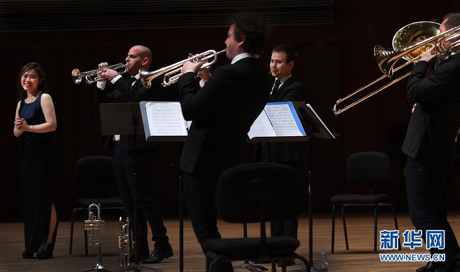 12月27日,中国旅法女高音李一(左一)和法国铜管五重奏乐团成员举行音乐会。当日,为迎接新年到来,推动高校间的艺术交流,让更多的师生享受高雅艺术,西安交通大学管理学院携手西安音乐学院、中法文化艺术交流协会(AEAFC)等单位举办《钢铁意志——旅法女高音李一和她的法国朋友们》新春音乐会,探索高雅艺术的跨国、跨高校间合作。新华社记者陶明摄