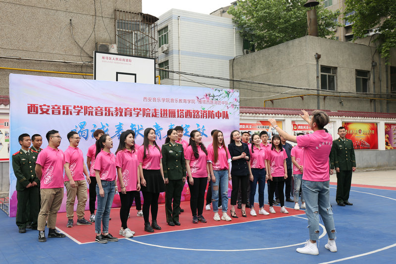 2017年4月26日,按照西安音乐学院党委副书记刘正利的指示,音乐教育学院党总支、团总支带领三十余名师生来到雁塔西路消防中队,参观消防设备,学习消防设备使用和消防安全常识。双方联合举办汇演,演出了独唱、合唱、手风琴、小提琴、舞蹈、古筝等节目。