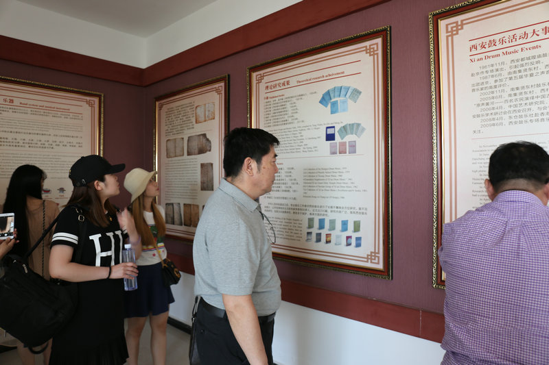 鼓乐社的老社长田中禾、现任社长田孝梨与乐社成员演出了鼓乐套曲,展示了鼓乐中乐器演奏、歌章演唱的魅力。演出结束后,田孝梨带领大家参观鼓乐陈列馆,为师生介绍鼓乐的发展历史,以及在发展过程中所留传下的珍贵乐谱资料、文献资料、乐器。在场师生无不感叹西安鼓乐的文化魅力。