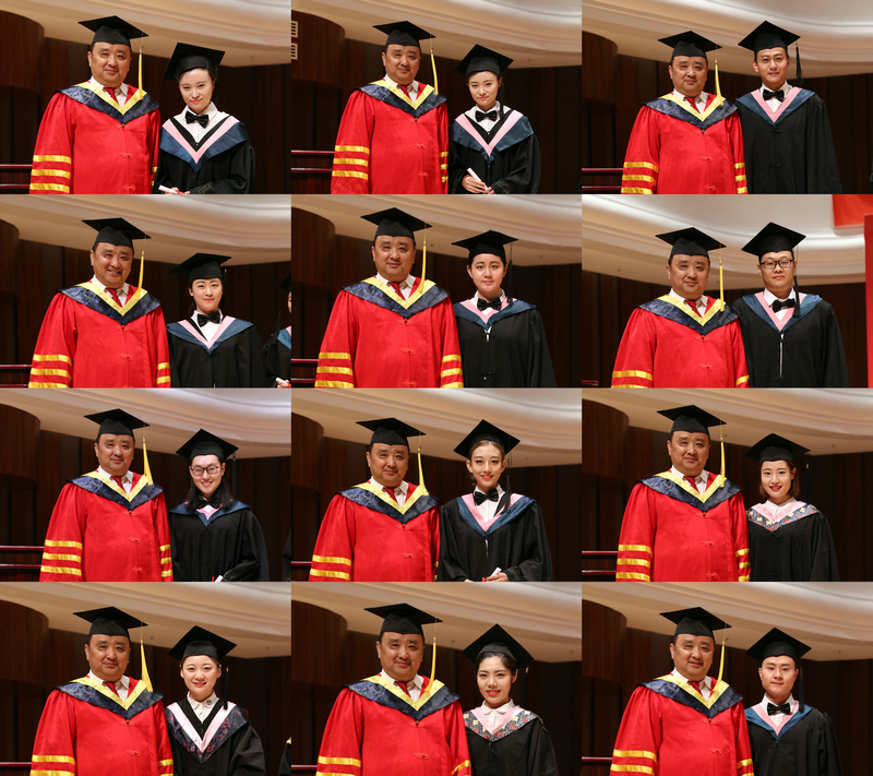 | 院长王真为毕业生代表正冠扶苏并合影 |