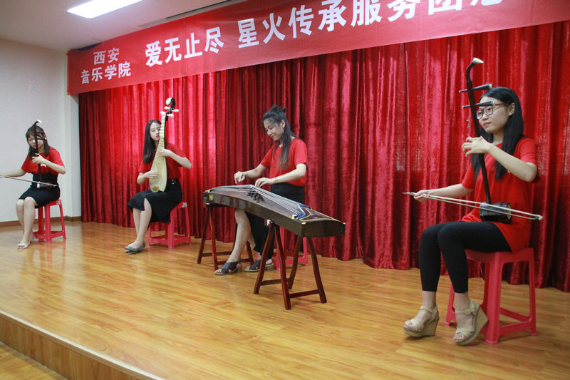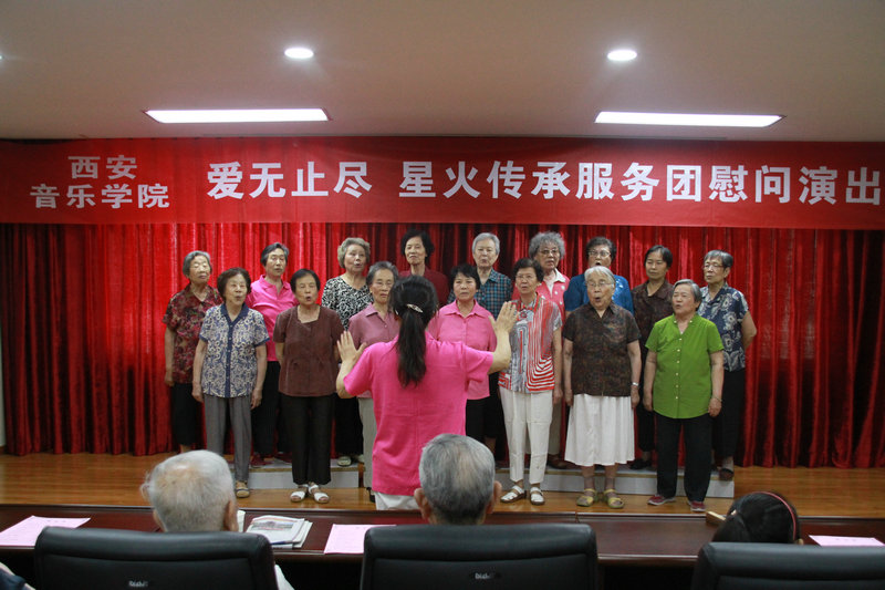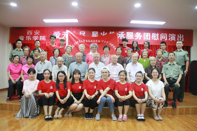 2017年7月7日,在“七七事变”爆发80周年纪念日、中国人民解放军建军90周年来临之际,西安音乐学院暑期三下乡社会实践“爱无止尽·星火传承”服务团走进第四军医大学干休所开展慰问演出活动,为老首长们送去精彩的文艺节目。