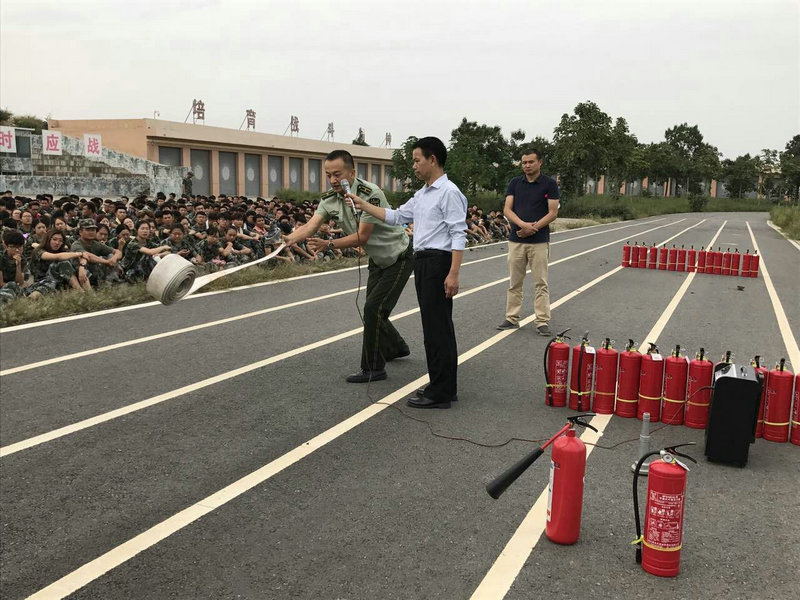 2017年9月18日,保卫处会同学工部在军训基地对1000余名新生开展消防疏散逃生和灭火演练,市公安局消防支队宣传科科长王征警官应邀为新生作消防知识培训和实战演练。