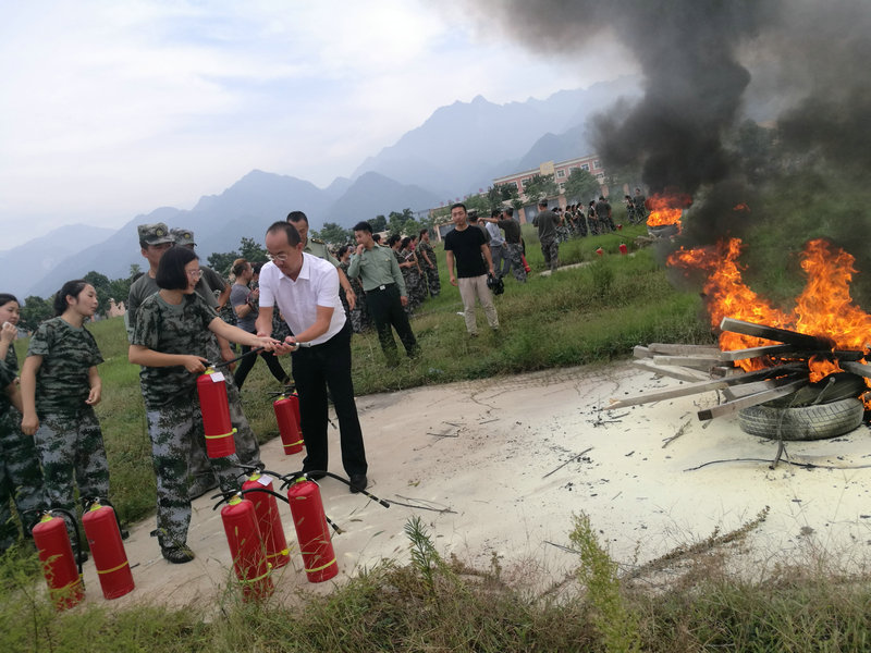 此次培训全体新生全部参加了各个环节的演练,通过王征警官的耐心指导,同学们不但从思想上提高了对消防的认识,更在实战中掌握了操作技能。“珍爱生命、火患必除”的良好舆论氛围已在学生军训生活中形成。