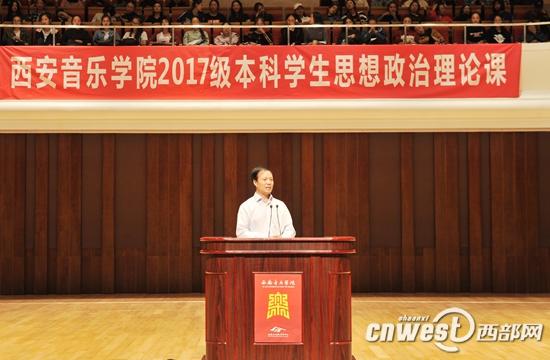音乐院校的专业教学多为“一对一”的小课教学模式,即使是理论基础大课也不过百八十人。近日,作为陕西省高校人数规模最小的西安音乐学院,竟然由党委书记张立杰为2017级全体本科新生以及思政课教师和院系总支书记、辅导员近1100人,讲授了一堂别开生面的思想政治理论公开课。