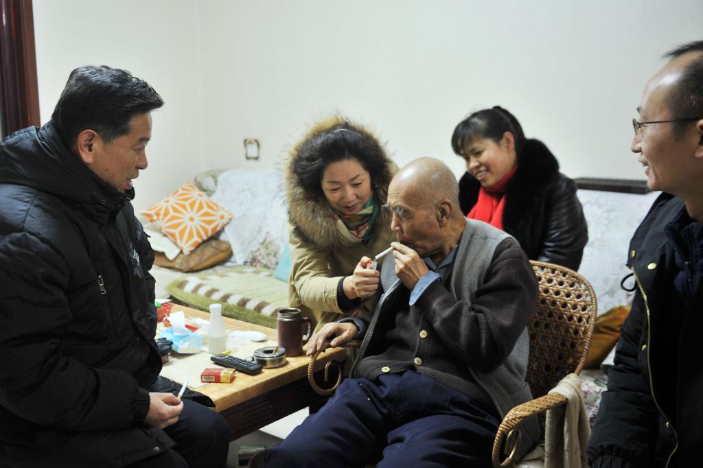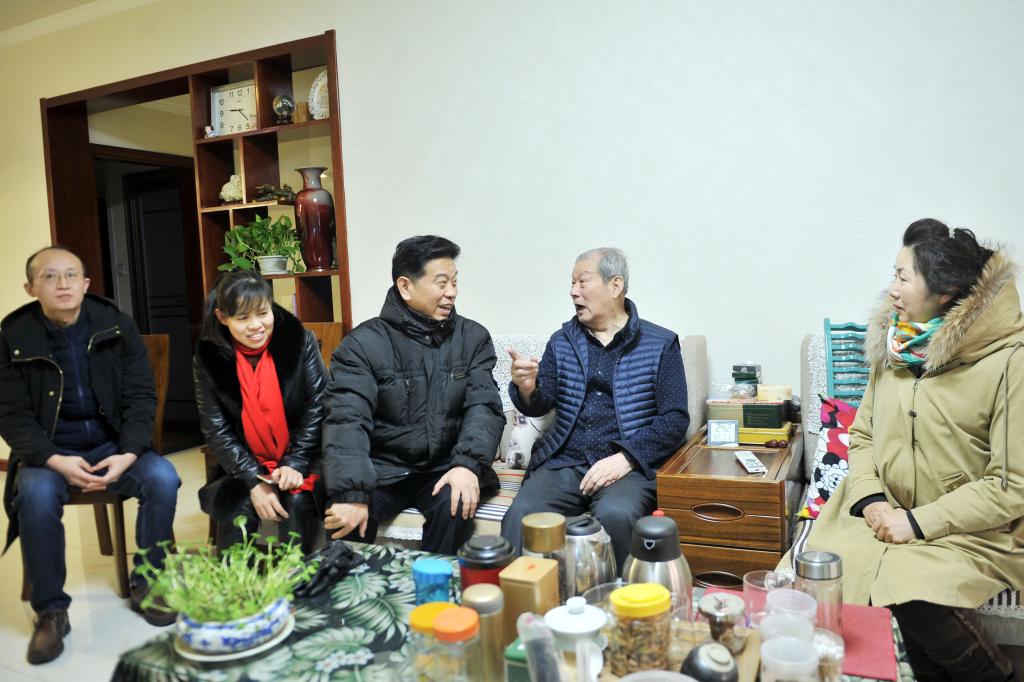 每到一家,校领导都亲切地与他们促膝交谈、嘘寒问暧,详细了解他们生活和身体情况,并感谢他们对学校发展一如既往的关心和支持,衷心祝愿他们身体健康、生活愉快,还叮嘱相关部门要继续为老同志做好服务,切实为他们解决实际困难,让老同志老有所乐、老有所享;大家对学校2017年所取得的成绩感到自豪和欣慰,表示要老有所为,发挥余热,继续支持学校的发展,对学校给予的关心和祝福表示感谢,并祝愿学院各项事业越来越好,再上新台阶。