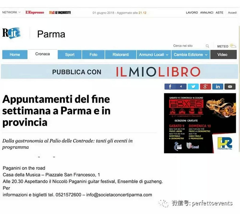 意大利帕尔马市政厅官方网站对本次活动的报道和介绍