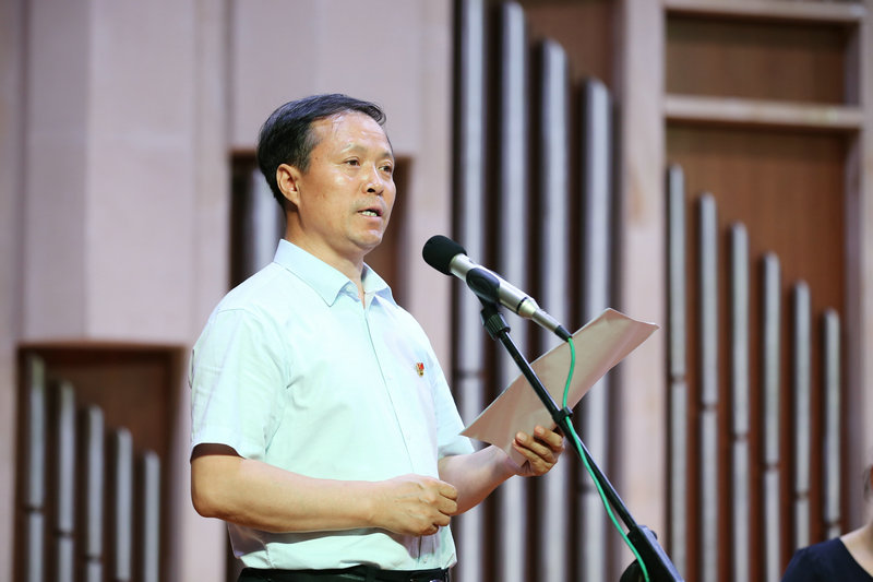张立杰发表了题为《不忘初心,牢记使命,谱写新时代学校追赶超越新篇章》的讲话。他强调,在中国共产党从诞生至今走过的97年光辉历程中,一代又一代共产党人团结带领全国各族人民谱写了中国革命、建设、改革、发展的壮丽篇章,从根本上改变了中国人民和中华民族的前途和命运。在我校近70年的办学历程中,学校坚定贯彻党的教育和文艺方针,各级党组织和广大党员顺应时代潮流,艰苦奋斗、开拓进取,为推动我国高等艺术教育事业做出了卓越贡献。近年来,校党委坚定不移落实全面从严治党,立足深化改革和可持续发展,抓大事、谋全局、布新篇,带领全校党员干部和师生取得了可喜的成绩。张立杰从三个方面对学校党的建设和党员干部提出了具体要求,一是要缅怀党的光辉历史,增强推动学校内涵式发展的使命感和责任感;二是要加强党的建设,为学校事业发展提供坚强的组织保证;三是要践行习近平新时代中国特色社会主义思想,在攻坚克难、追赶超越中发挥党员干部先锋模范作用。他希望广大党员干部继续肩负起“不忘初心、牢记使命”的责任担当,在新时代干事创业的舞台上,把“家校情怀”上升到“家国情怀”,以实际行动为学校高水平、有特色音乐学院建设不懈努力,为助力文化强国和教育强国建设贡献西音力量。