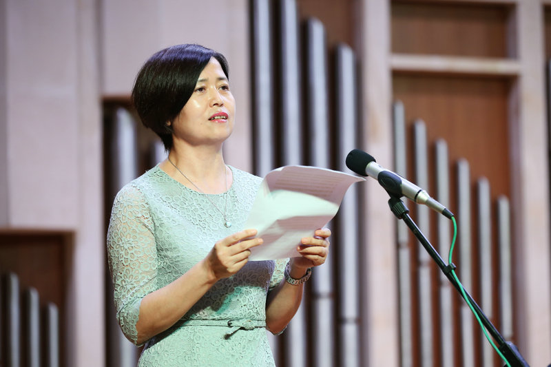 | 先进基层党组织代表图书馆党支部书记景月亲发言 |