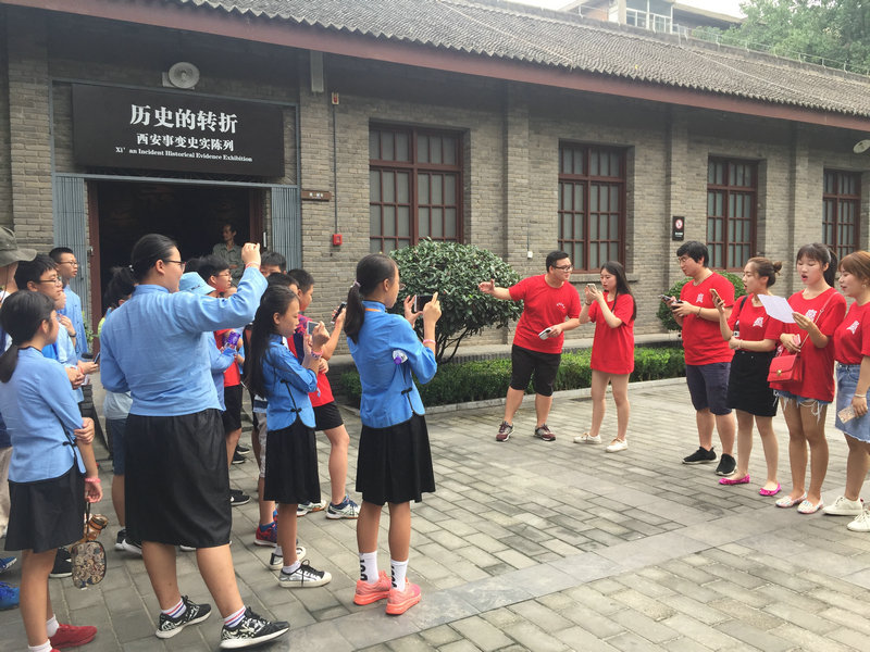 7月15日,声乐系另一小分队来到西安事变纪念馆进行志愿活动。活动中,同学们化身志愿者,协助工作人员进行引导、教唱红歌、惠民文艺汇演等,由此激发了同学们的爱国情怀,并施展了专业,回馈了群众。