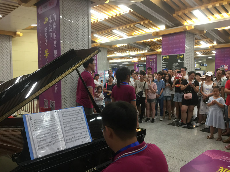 同时在我校团委、宣传部的组织下,声乐系精心策划准备,由声乐系团总支带队参加了西安市地铁办(公司)于开展第二届“青春印迹•我的城市我的梦”西安地铁青年创新艺术季活动。7月25日,声乐系选出两名师生参加了开幕式活动。8月11日、15日声乐系专场演出中,声乐系派出了8名学生,精心准备了11个节目,其中包括独唱、合唱、对唱等形式,演出现场气氛热烈,为广大群众送上了精彩纷呈的视听盛宴,受到了众多好评。