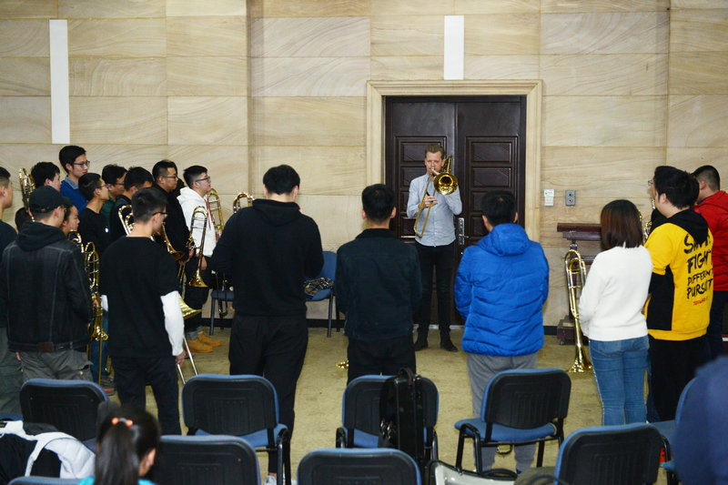 近日,借世界著名交响乐团“柏林爱乐乐团”访问西安并举办音乐会之机,在管弦系、国际合作与交流处等部门积极联络与筹备下,该团各主要声部首席12位演奏家顺访我校,举办“首席大师课”等学术交流活动。