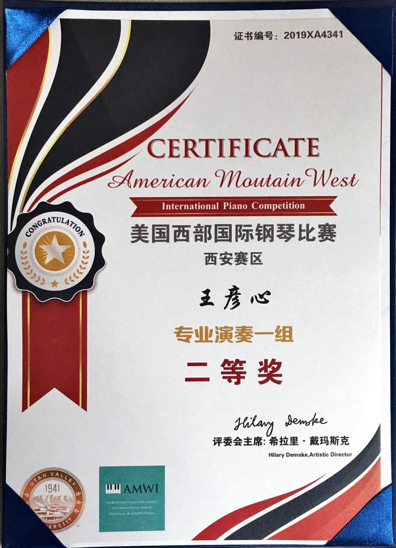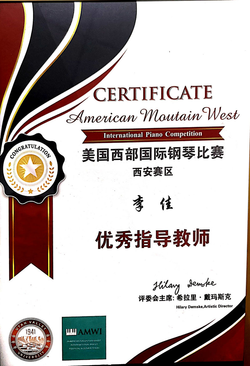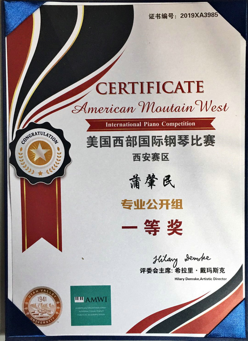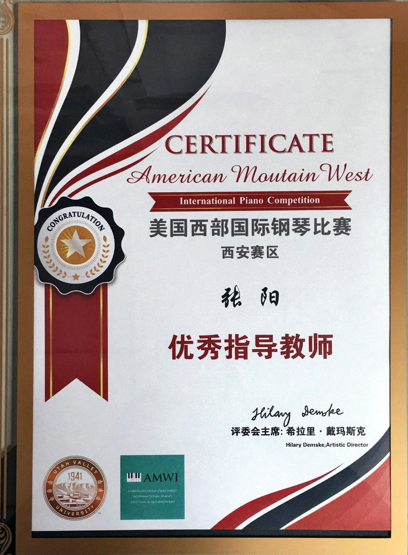 与此同时,由美国犹他山谷大学主办的“美国西部国际钢琴艺术节”暨中国区西安赛区选拔赛拉开帷幕,我校钢琴系本科学生蒲肇民(指导教师:张阳)获“专业公开组”一等奖,附中学生王彦心(指导教师:张阳)获“专业演奏一组”二等奖。李佳、副教授张阳获优秀指导教师奖。