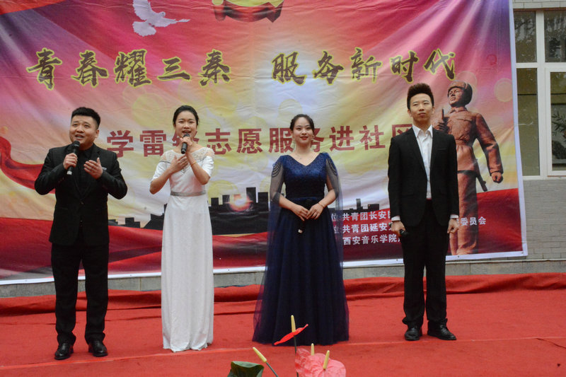 2019年4月10日,西安音乐学院声乐系学生党支部、团总支与延安大学西安创新学院团委组织学生志愿者赴长安区王莽镇养老院,举办“青春耀三秦,服务新时代”慰问演出活动,为养老院老人表演了民族古典舞《惊鸿舞》、陕北民歌《东方红》、女声独唱《青春舞曲》、古筝独奏《浏阳河》、民谣弹唱《南山南》、二重唱《母亲》及四重唱《我和我的祖国》等12个节目,得到了老人们的阵阵掌声。
