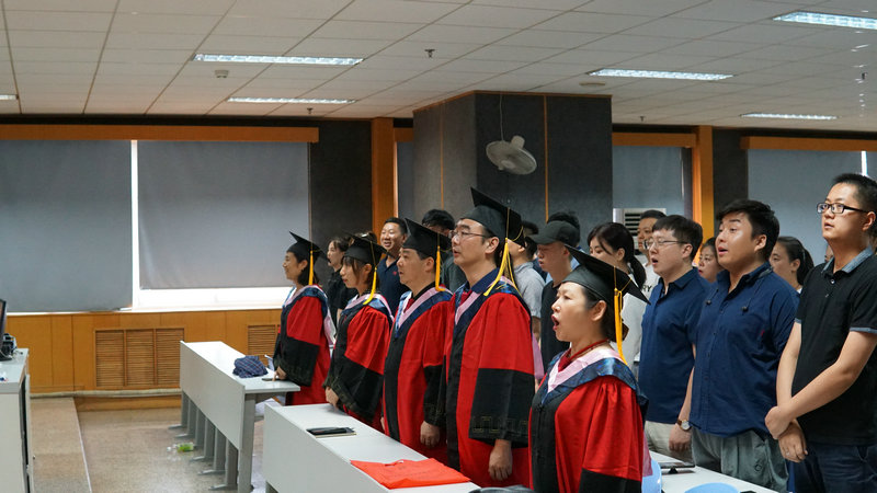 仪式在国歌声中拉开帷幕。青年教师代表发言,给予对毕业生们鼓励与期望,希望大家以后都能常回家看看。优秀毕业生代表同学发表毕业感言。教师们为毕业生正冠扶苏,大家与教师们互相拥抱,既有即将毕业的兴奋,更有离别时的不舍。