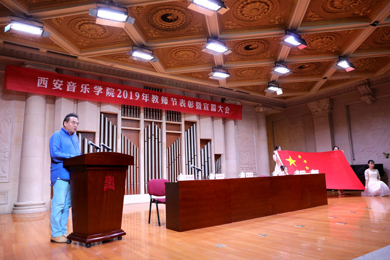 2019年9月10日,我校在学术厅举办以“庆祝新中国七十华诞,弘扬新时代尊师风尚”为主题的教师节表彰大会暨宣誓仪式。全体党委委员、校领导、中层干部以及讲师以上教师参加大会,副院长冯力斌主持表彰大会。