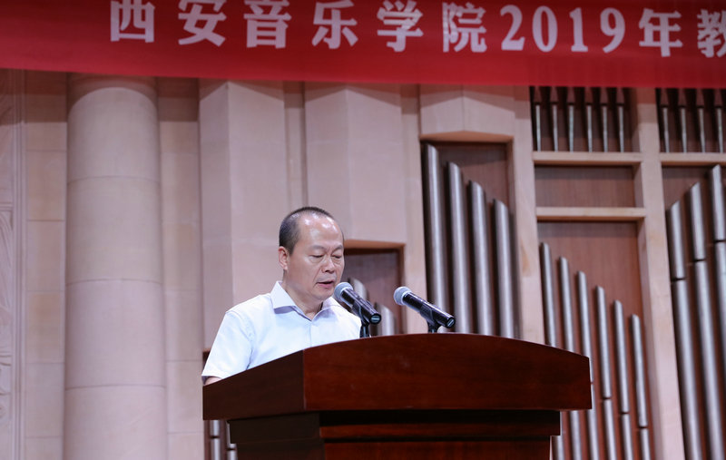 张立杰在讲话中向我校教师提出四点殷切希望。一是要坚持社会主义办学方向不动摇,走中国特色社会主义艺术教育之路。二是要坚守职业理想,涵养道德情操,当好学生引路人。三是要潜心育人、用心创作,大力提升人才培养质量。四是要心怀大局、勇于担当,助力学校改革发展。学校未来的命运掌握在每一位教职员工的手中,让我们团结起来,以勇于担当的主人翁精神,为推进学校“四个一流”建设,加快实现高水平、有特色音乐学院建设目标而不懈努力,以优异的成绩为新中国成立70周年和我校建校70周年献礼!