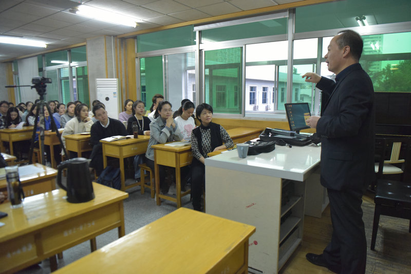 随后,在教学楼4-403教室,刘正利以高校使命与担当为主线,结合教师、学生中普遍存在的问题,尤其是抓住青年学子容易面临的困惑,首先讲到真正的“高”、“富”、“帅”到底应该是什么?所谓“高”,就是要志存高远,品德高尚,所谓“富”,就是要知识丰富,知行合一,所谓“帅”,就是要身心健康,积极向上。由此入题引发文艺必须有热度、有温度、有高度,文艺必须坚持时代性、人民性和艺术性,以生动鲜活的例子启发大家对“不忘初心、牢记使命”的认真思考,更强调了面对教师和学生不同主体时主题教育应该学什么、怎么学的问题。