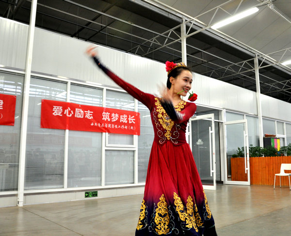 怀着无比崇敬的心情,一行人来到陕甘边革命根据地照金纪念馆,详细了解了陕甘边革命武装的创建历程和开展各项革命运动的英雄事迹。作为二十世纪30年代由刘志丹、谢子长、习仲勋等共产党人创建的中国北方第一个山区革命根据地,一件件历史实物,让大家深切感受到了那个热情澎湃、热血沸腾的革命年代,体会到老一辈无产阶级革命家和革命先烈们为革命事业艰苦奋斗、无私奉献的情怀与信念。接受红色思想的洗礼,极大激发了同学们不忘初心、牢记使命、砥砺前行的决心,也对本次活动的意义有了更深刻的认识。当天下午,一行人参观了铜川海升现代农业有限公司。经过讲解,大家对现代农业产业扶贫有了全新的理解和认识。参观结束后,我校学生为集团工作人员奉献了一场丰富多彩的慰问演出,同学们用自己最真挚的表演向工作人员表达了真诚的慰问和敬意。