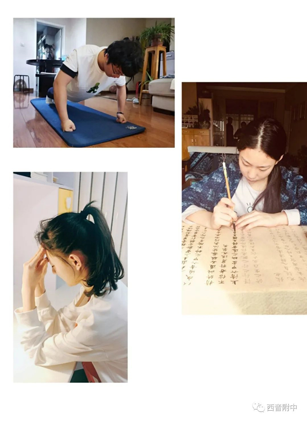 在“停课不停学”期间,网上课堂、电子教材、云端学习“接踵而来”。在这“眼花缭乱”的日子里,你的眼睛能否撑得住呢?你的身体是否吃得消呢?特殊时期,请同学们在进行网上学习之余注意用眼,防止视疲劳;适度运动,保持良好状态;放松心情,注重心理健康!看看我们的同学,是怎么样做到劳逸结合的: