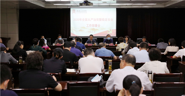 为深入学习贯彻习近平总书记在十九届中央纪委四次全会上的重要讲话精神,贯彻落实教育部、陕西省委教育工委全面从严治党视频会议精神,5月22日,我校召开2020年全面从严治党暨稳定安全工作会议。全体校领导,副处级以上干部参加会议,党委副书记李宝杰主持会议。