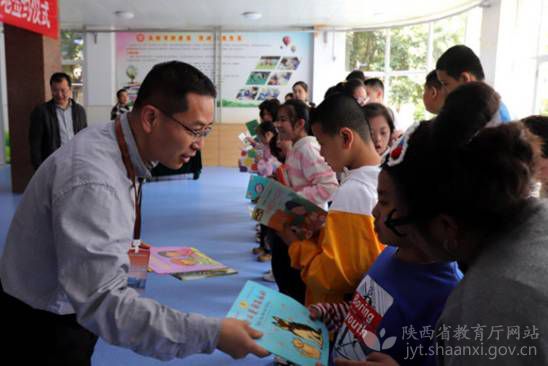 西安音乐学院向启智学校孩子们捐赠了图书等爱心物品现场