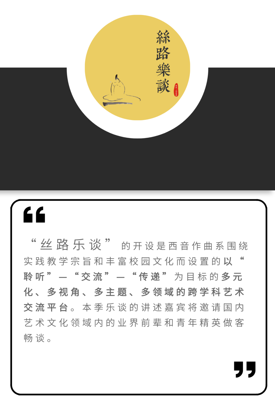 由西安音乐学院作曲系主办的“丝路乐谈”跨学科艺术交流活动正式开启!